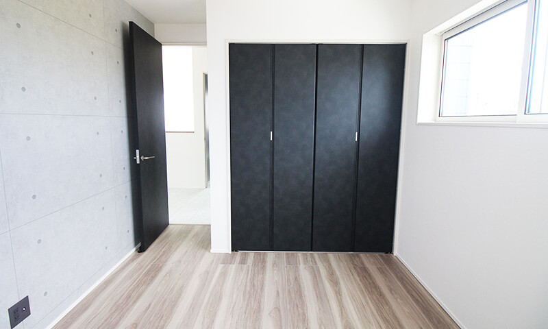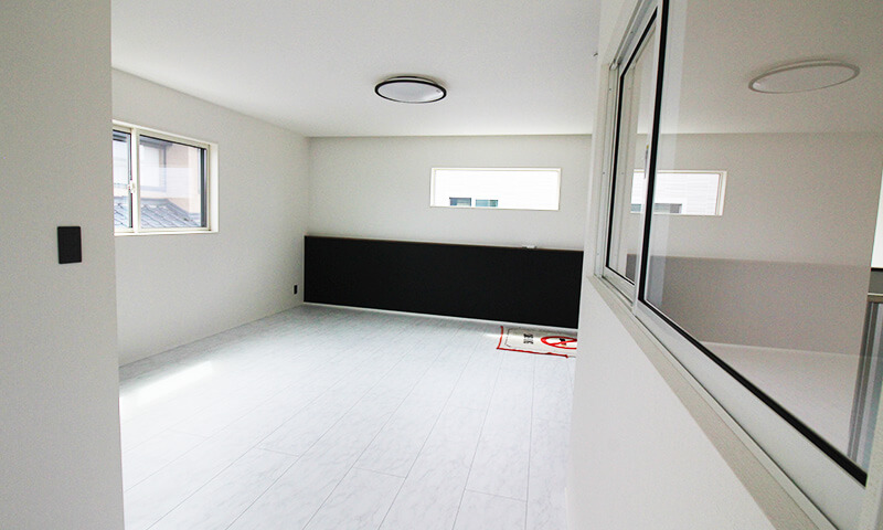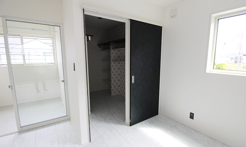 リビングに隣接した和室も、モダンな格子模様のユニット畳を並べました。永く住んで物が増えても室内がきれいにまとまるよう、各部屋も和室同様に大型の壁面収納やウォークインクローゼットを設けてあります。