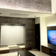 リビングに隣接した和室も、モダンな格子模様のユニット畳を並べました。永く住んで物が増えても室内がきれいにまとまるよう、各部屋も和室同様に大型の壁面収納やウォークインクローゼットを設けてあります。