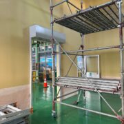そして床、天井と軽鉄材で骨組みしていきます。この骨組みを立てることを「軽天工事」と言います。