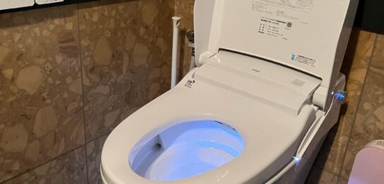 三条市の某店舗でトイレの入れ替え工事を行いました。 便座のフタもボタンでピッと押